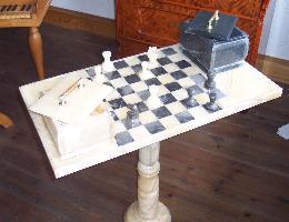 Schachtisch mit passenden Figurenschatullen und Figuren komplett aus Marmor ca 30kg